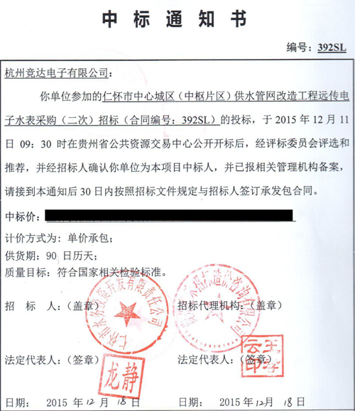 貴州仁懷地區(qū)采用招投標形式,競達公司中標。實施立式遠傳遠控水表改造。目前已使用8萬只以上。